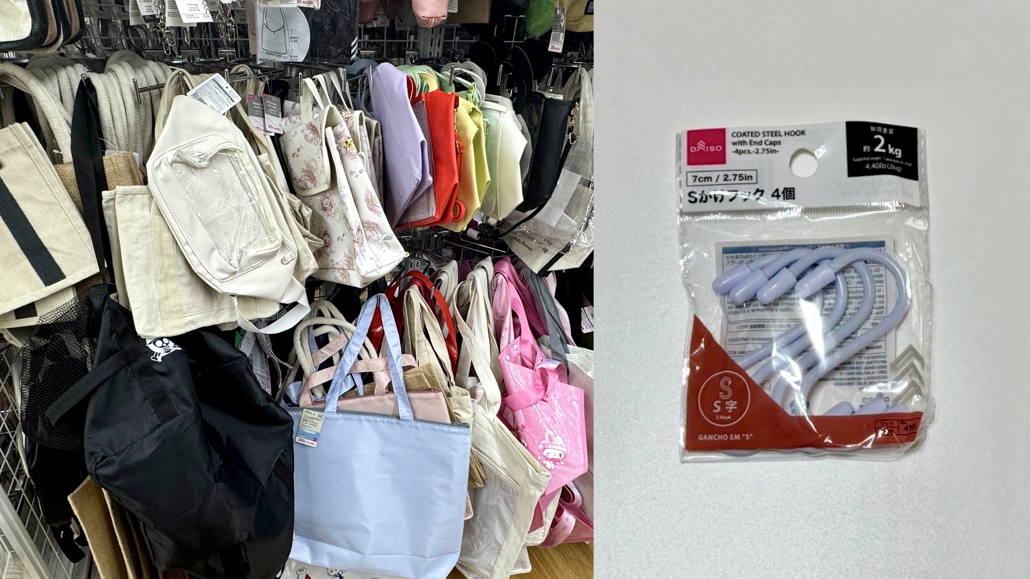 4.狭い車内の救世主!S字フック&トートバッグ