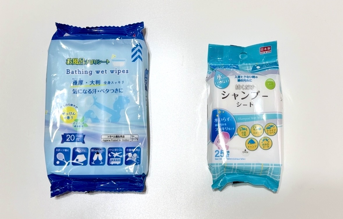 シャンプーシート(110円~):髪のベタつきが気になる時にサッと拭くだけ。一気に「お風呂上がり感」が復活します。